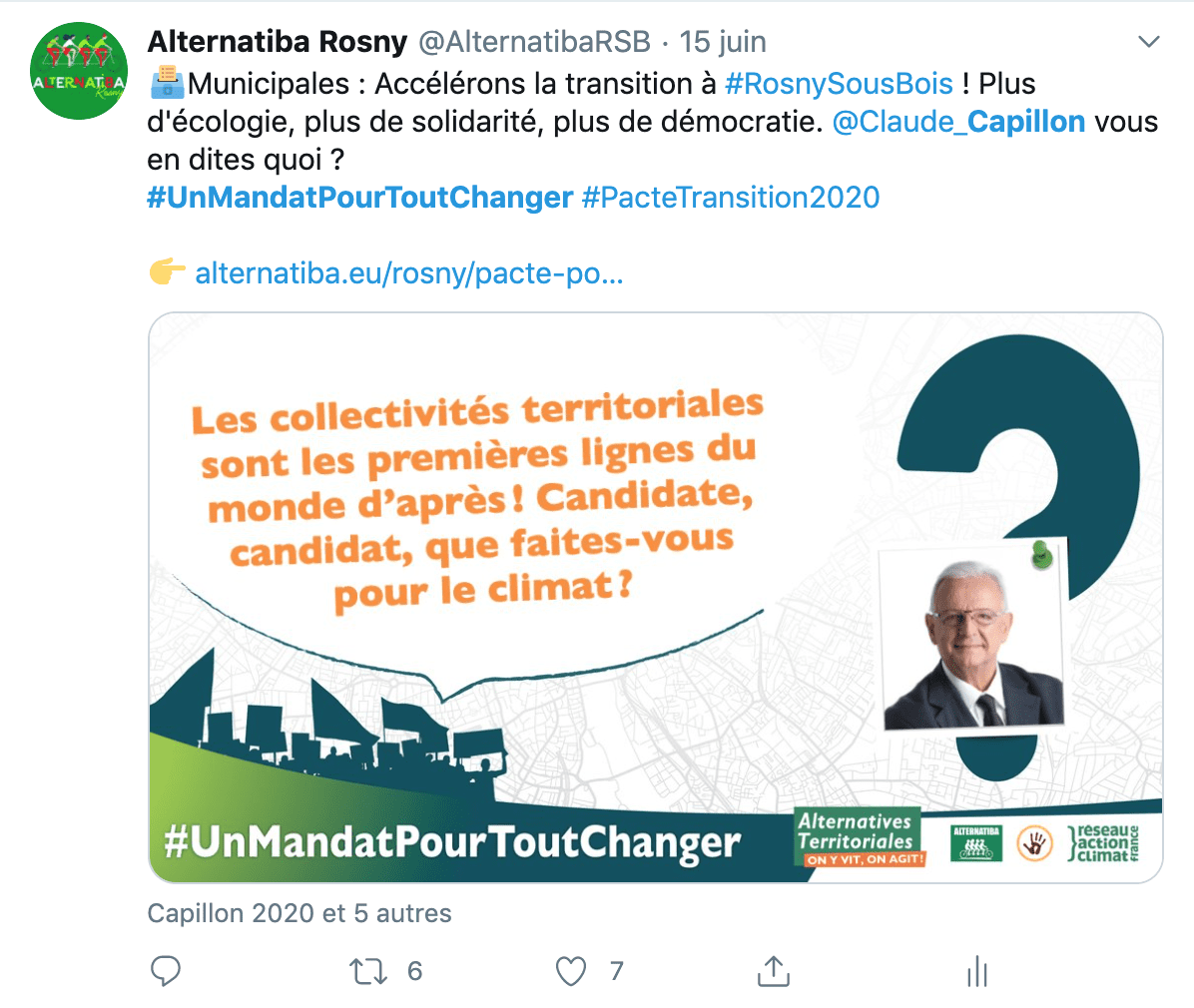 À Rosny-sous-Bois, le Pacte pour la transition, porté par l’association Alternatiba Rosny, est le fruit d’une réflexion commune avec d’autres associations locales : RosnyCyclettes, Faitout Mais Pas Tout Fait, qui sont partenaires, mais aussi la Ligue des Droit de l’Homme et FaSol.