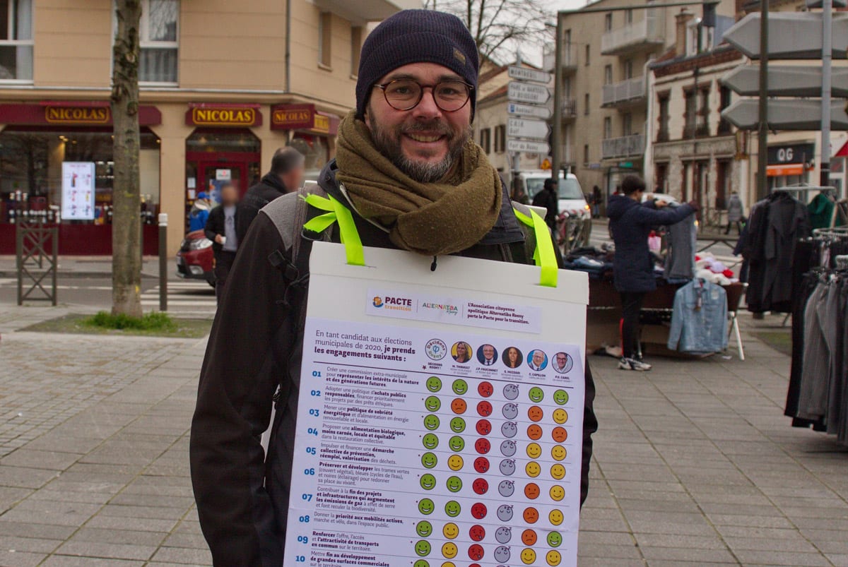 Dès février ce pacte, a été présenté aux 6 listes candidates à l’élection municipale de Rosny-sous-Bois. Après plusieurs rencontres, 4 Pactes pour la Transition ont été signé dès le 1er tour. Des membres de l’association sont allés dans les rues de Rosny-sous-Bois montrer le tableau de synthèse et expliquer leur démarche auprès des habitant.es.